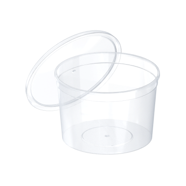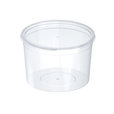 Пластиковая банка 500 мл (Ø 110 мм) — прозрачная порционная тара из сертифицированного пищевого пластика для производителей рыбных пресервов, икры, мёда, готовых салатов, джема, солений, творога, соусов и приправ.