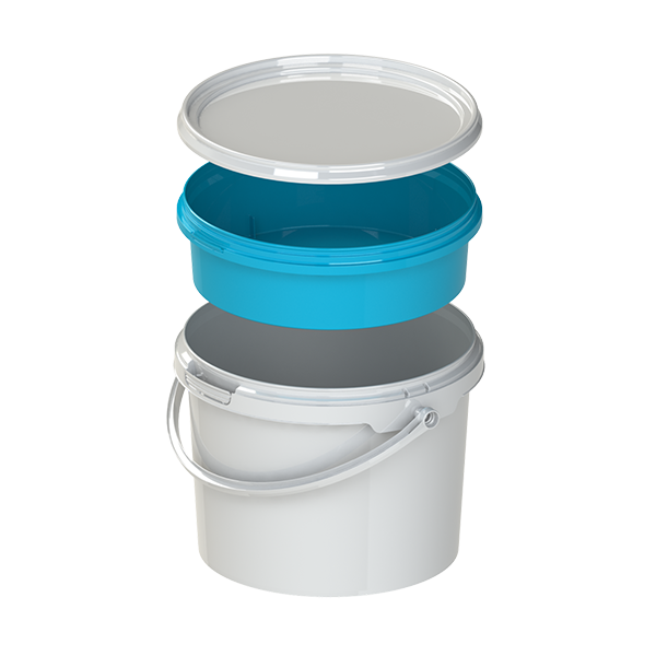 Специализированный контейнер-вставка объемом 1 литр (1,054 л), предназначенный для разделения двух компонентов в единой емкости. Подходит для упаковки строительных материалов, клеев, смол и других двухкомпонентных составов, где необходимо предотвратить преждевременное смешивание ингредиентов до момента использования.