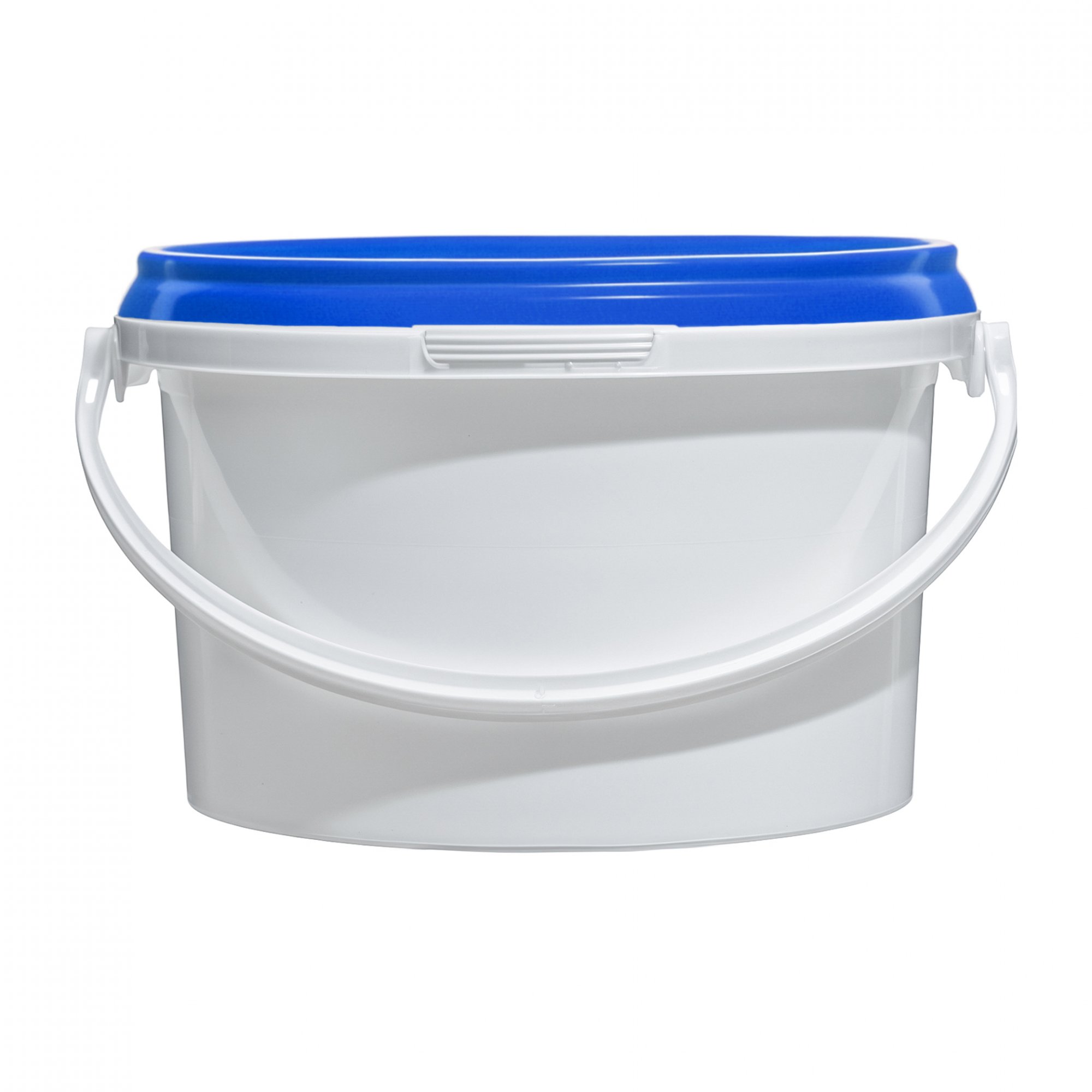 Пищевое ведро объемом 2,6 литра из качественного пластика, с синей крышкой и удобной ручкой для хранения и транспортировки жидкостей и сыпучих материалов, как для бытового, так и промышленного применения. Пластиковое ведро JET 25 – это выгодное и практичное приобретение, которое будет использоваться долгое время и визуально выделит Вашу продукцию на стеллажах в магазинах. Можно заказать оптом с отгрузкой в Екатеринбург