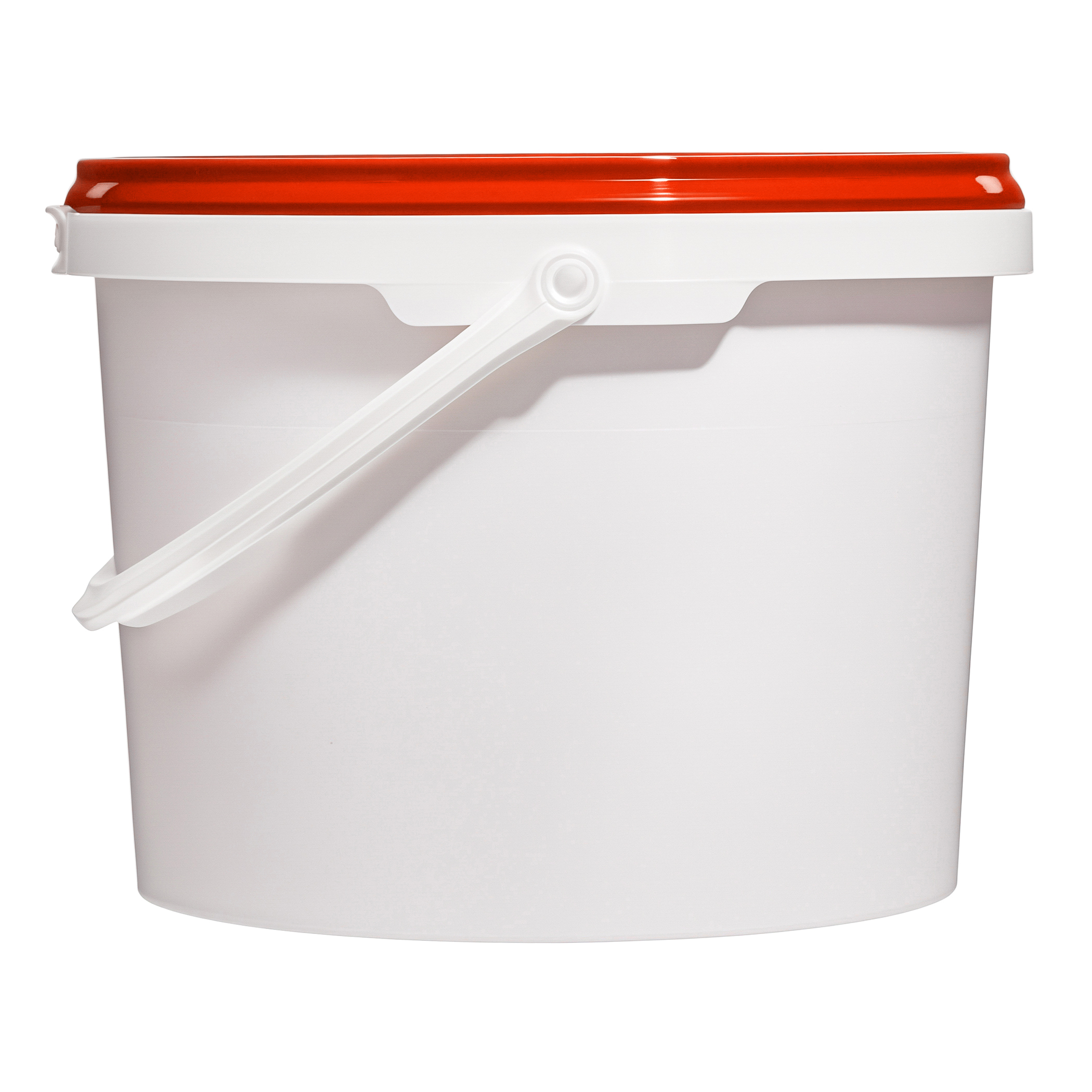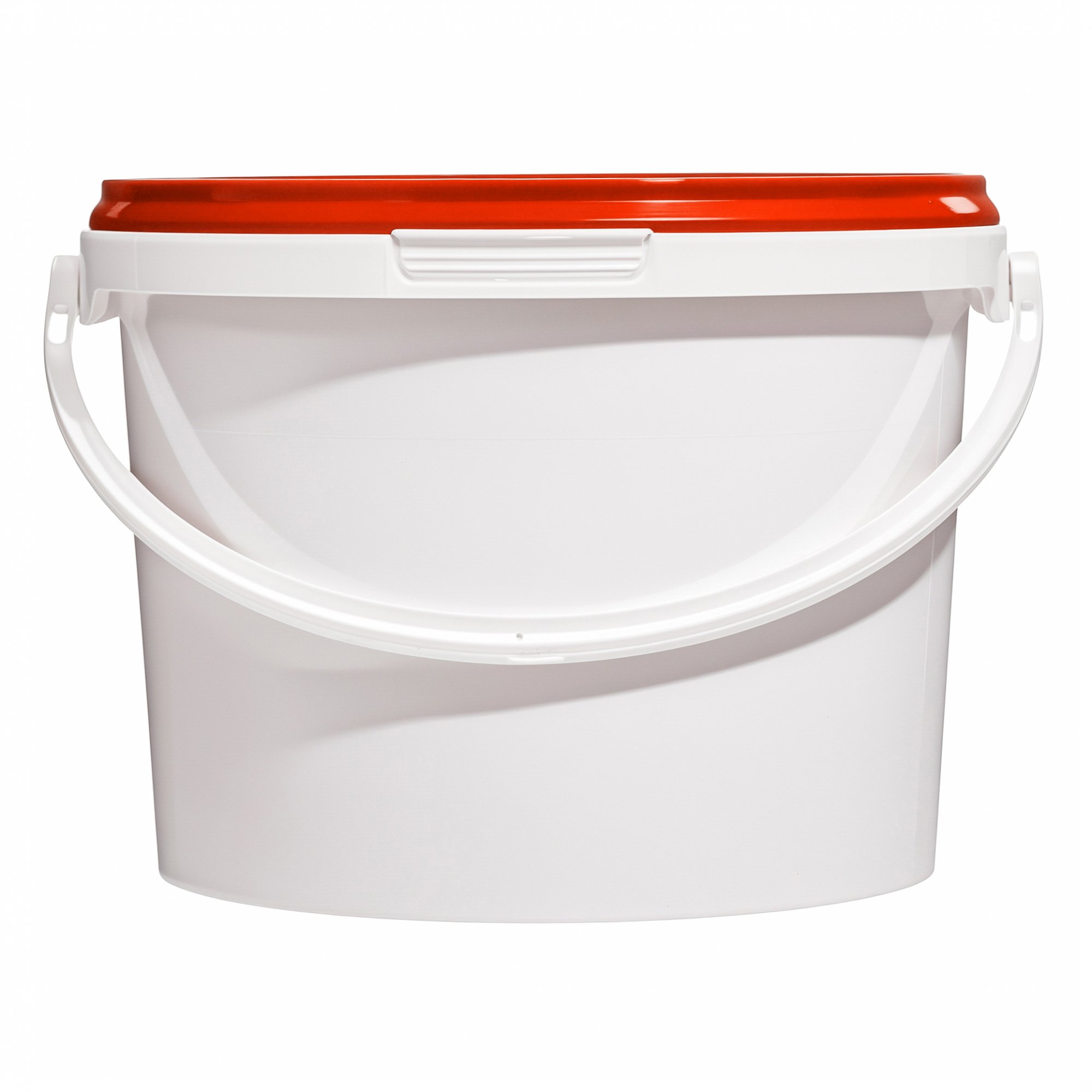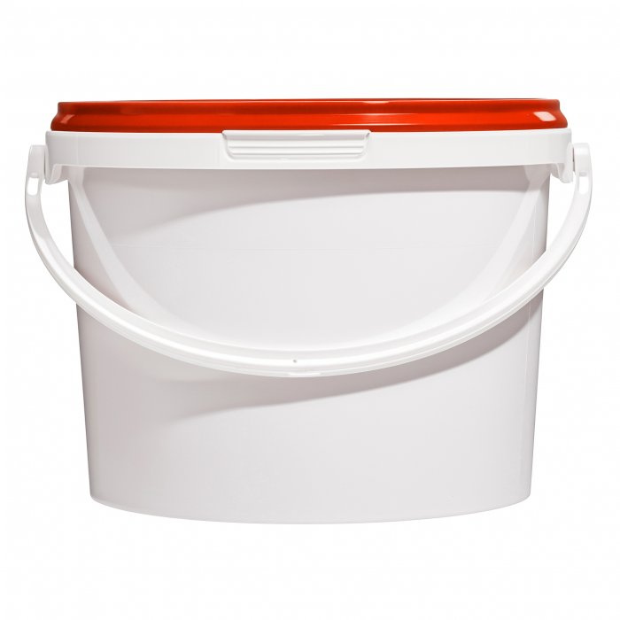 Небольшое пластмассовое ведро объемом 3 литра с прочной ручкой и крышкой красного цвета. Предназначено для пищевых продуктов, впрочем подойдет и для штукатурных растворов, сбора грибов, и т.п. - практически универсально.