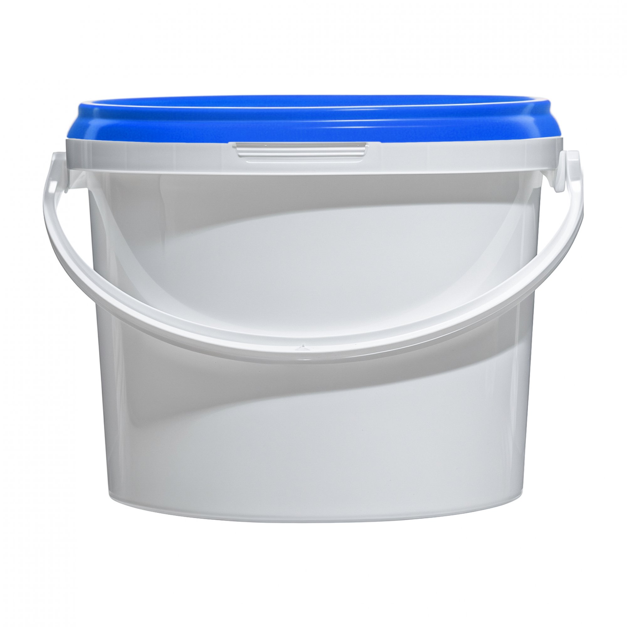 Ведро из пищевого пластика объемом 3,4 литра, с синей крышкой (можно выбрать и другие цвета). Есть ручка для переноски. Есть возможности для индивидуализации - нанесение печати, логотипа, текста и т.п. на корпус ведра (или на крышку). Предназначено для хранения как бытовых, так и химических жидкостей и сыпучих продуктов.