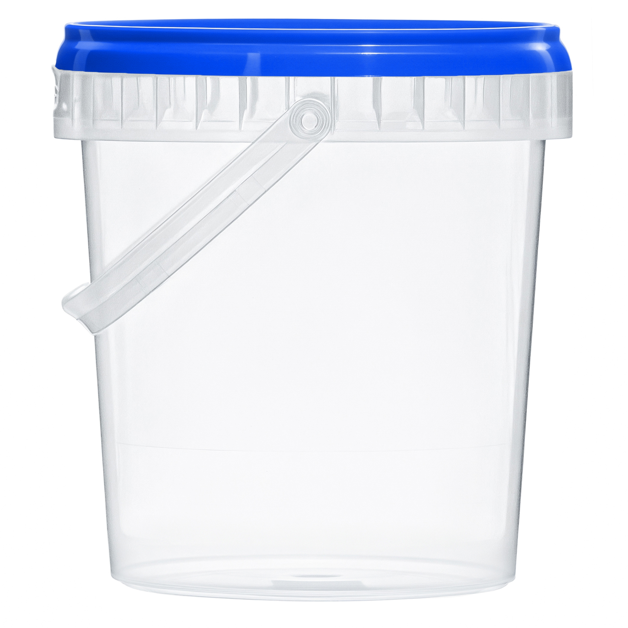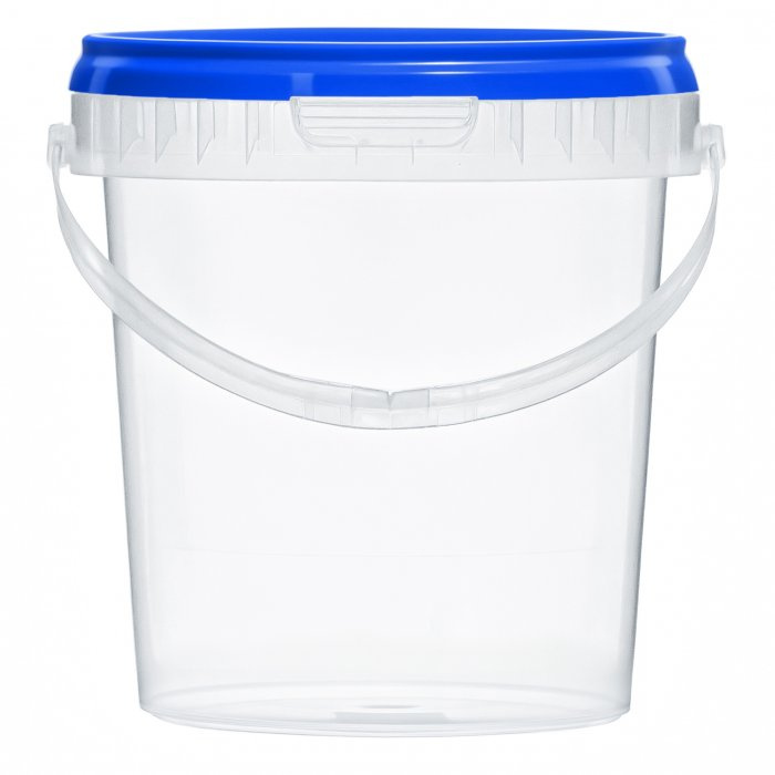 Удобное и практичное ведерко объемом 850 миллилитров, с ручкой и крышкой синего цвета. Крышка плотно закрывается, предотвращая вытекание жидкости и защищая продукты от пыли и грязи. Удобная ручка облегчает переноску даже при полной загрузке.