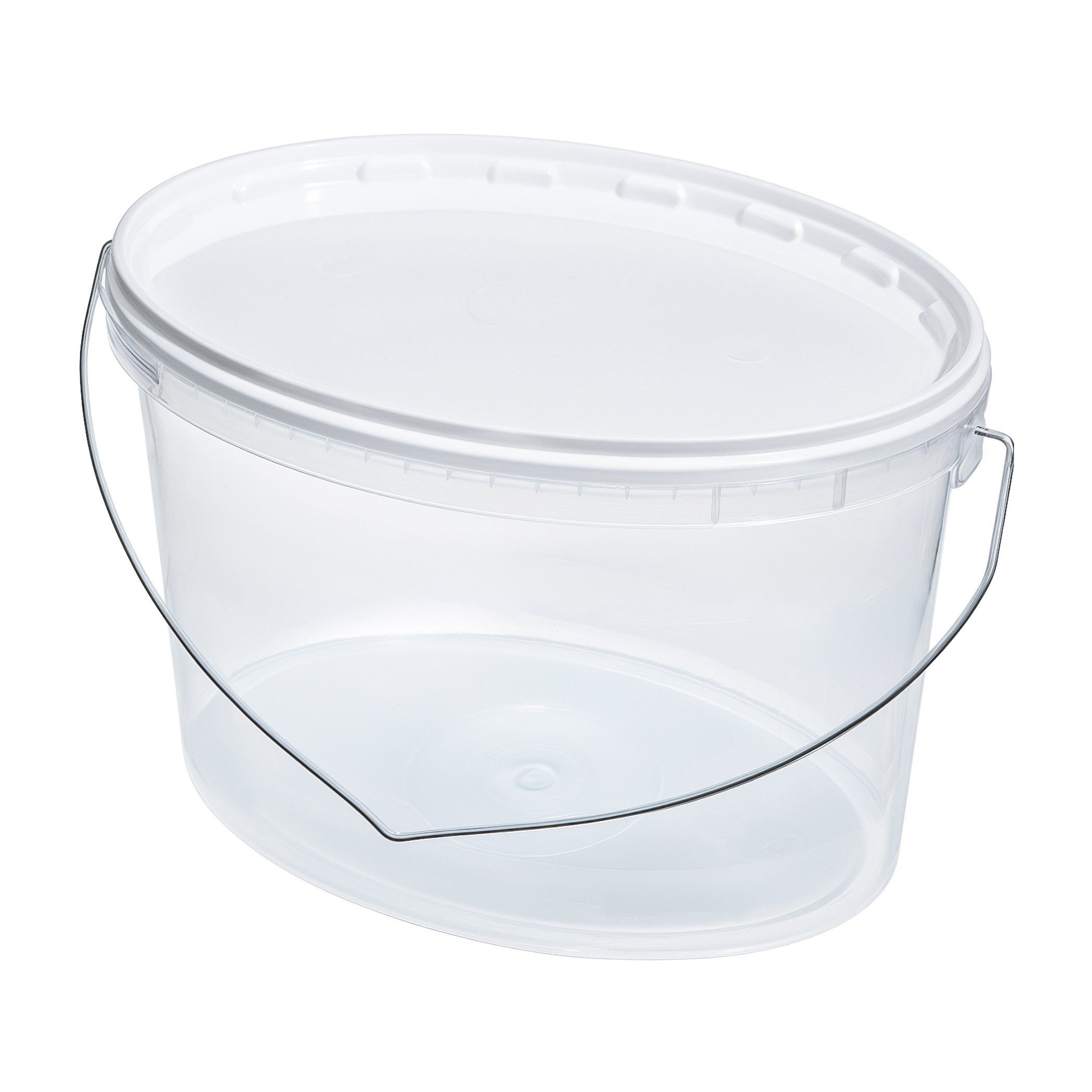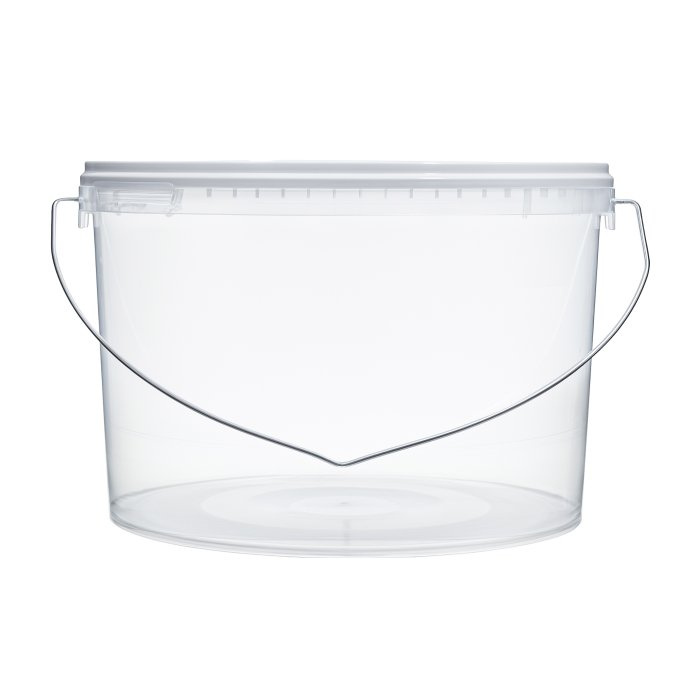 Прозрачное пластиковое ведро овальной формы, с пластмассовой крышкой и металлической ручкой, объем 5,8 литра. Многофункциональная емкость - подходит как для домашнего применения, так и для промышленного, торгового, производственного и.т.д. Можно хранить пищевую и непищевую продукцию. Оказываем услуги печати этикеток и брендирования упаковки.