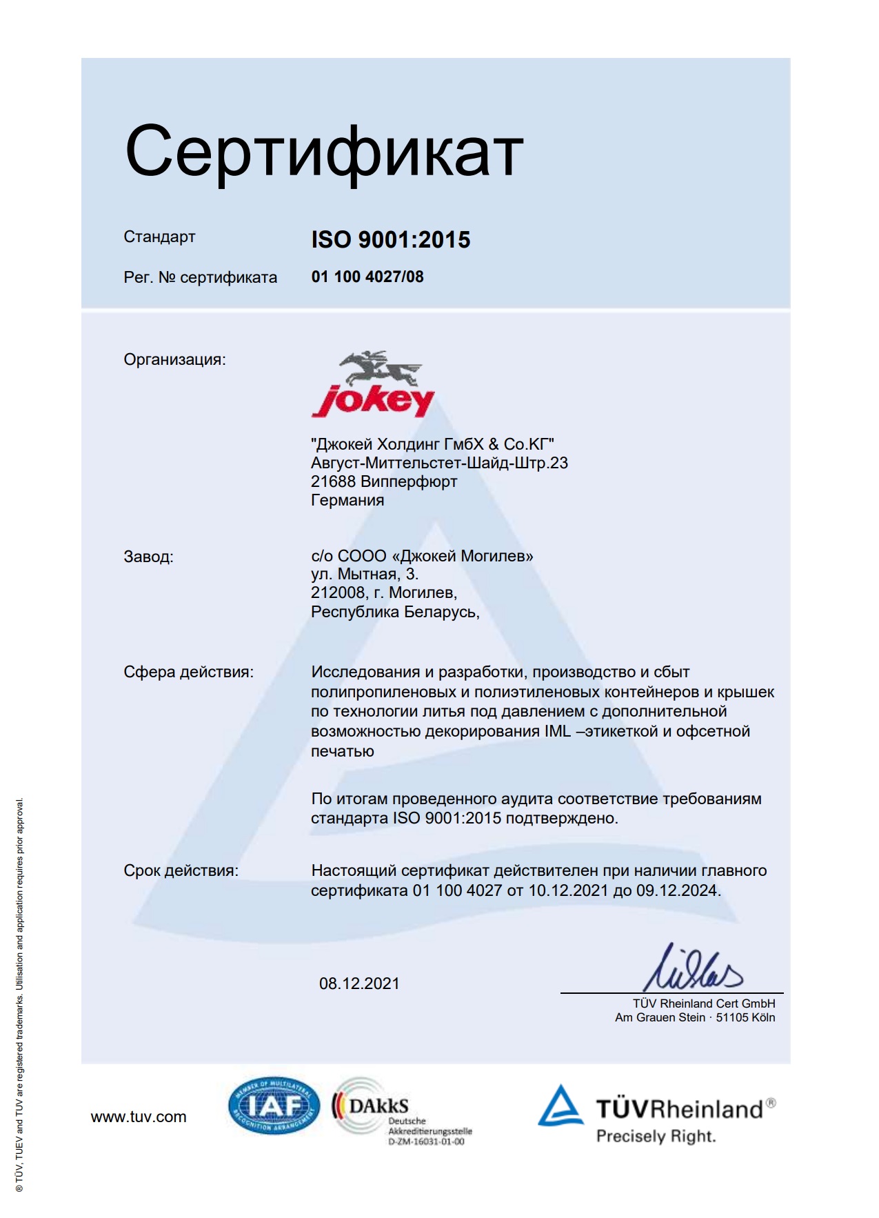 Сертификат соответствия ISO 2024